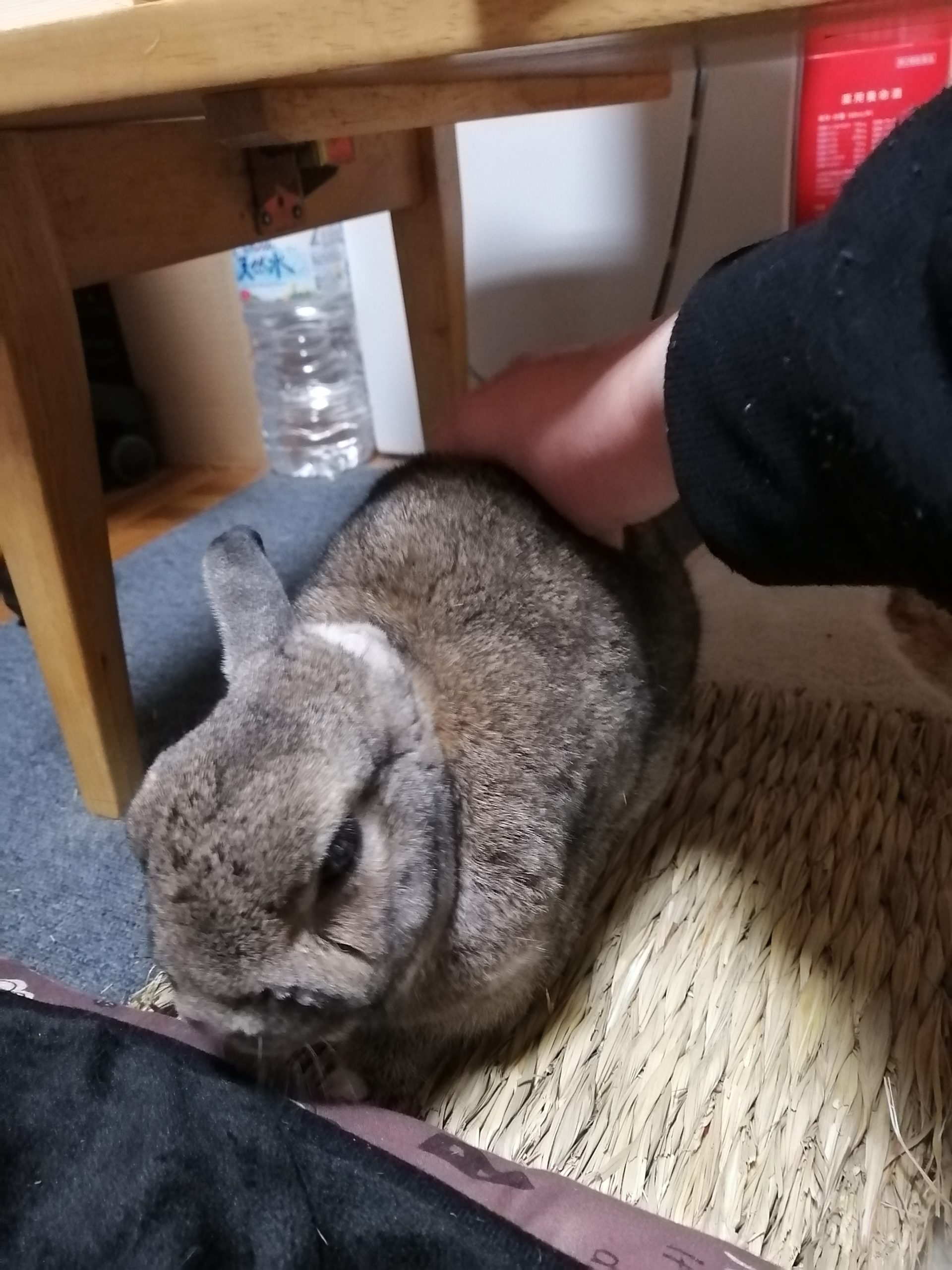 うさぎ様は自分のお気に入りのツボを撫でないと怒になるので、しっかりと利き手で撫でます。